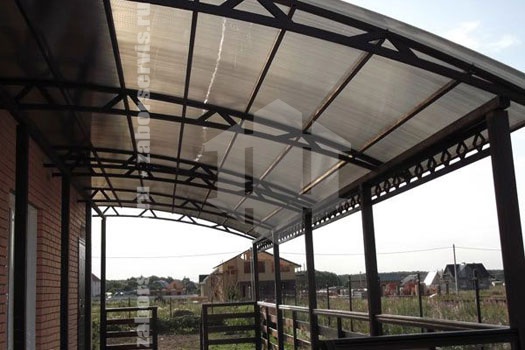 Если вы выберете крышу из профлиста, то под ней будет довольно темно, и вам придётся дополнительно устанавливать освещение. Используя поликарбонат, вы получаете сразу два преимущества: защиту от непогоды и естественное освещение.