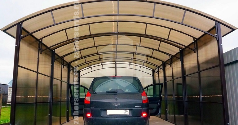 Если вы выберете крышу из профлиста, то под ней будет довольно темно, и вам придётся дополнительно устанавливать освещение. Используя поликарбонат, вы получаете сразу два преимущества: защиту от непогоды и естественное освещение.