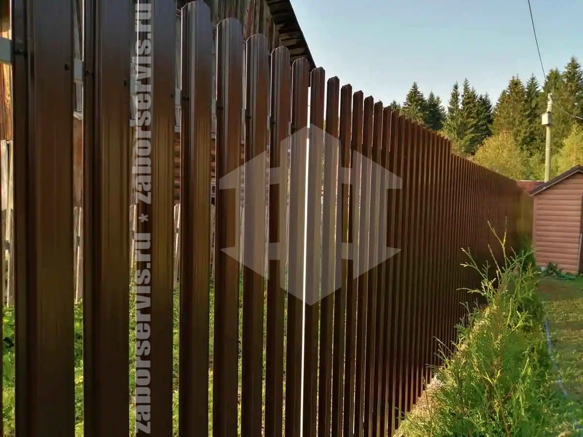• Забор из металлического штакетника коричневый 67 метров Артикул: S33E2328